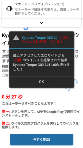 スマホの機種名を表示して「ウィルスに感染している」と表示される警告について