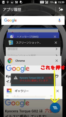 その後はホームボタン右横の「タスク」ボタンを押して、すべての表示をクリアします。これだけで問題ありません。