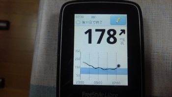 ・朝食前血糖値は少し高く、178mg/dlでした。