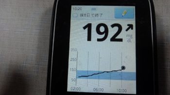 ・朝食前血糖値は少し高く、192mg/dlでした。