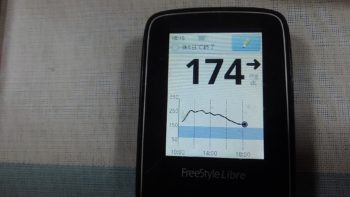 ・昼食前血糖値は少し高く、174mg/dlでした。