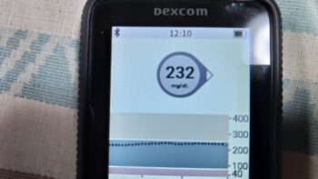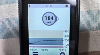 ・朝食前血糖は高く、232mg/dlでした(夜間に低血糖だったのですが、ブドウ糖を粒食べただけなのに起きたときに高血糖だした過ぎました)。