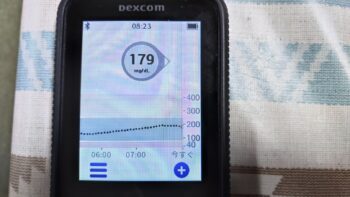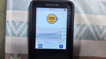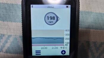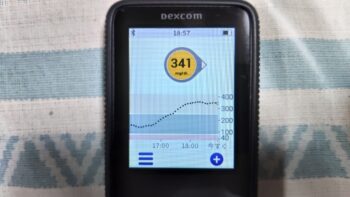・夕食前血糖値は高く、341mg/dlでした(:血糖値測定器の故障で不明でした)。