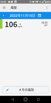 | 2022-11-15 | 血糖値 | 食事 | 超即効性インスリン 注射量 | 持続性インスリン 注射量 |