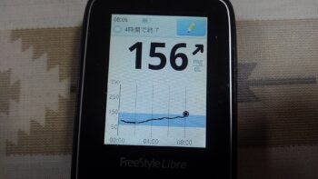 ・朝食前血糖値は少し高く、156mg/dlでした。