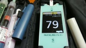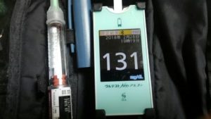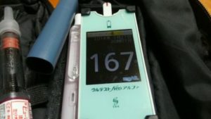 ・昨夕食: カレーうどん、ご飯一膳160g。インスリン注射量を1単位増やしました。