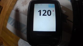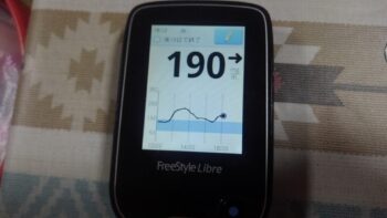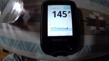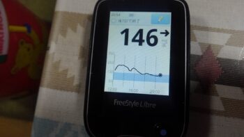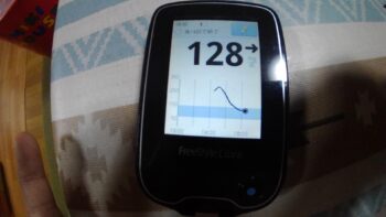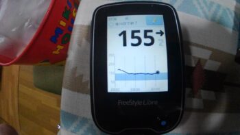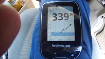 ・昼食前血糖値は高く、339mg/dlでした(朝食前にインスリン注射量をしたのですが、ダイヤルを回し忘れたかもしれません)。