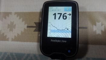 ・夕朝食前血糖値は少し高く、176mg/dlでした。