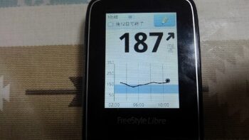 ・昼食前血糖値は少し高く、187mg/dlでした(。