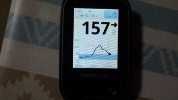 ・昼食前血糖値は少し高く、157mg/dlでした(。