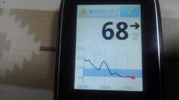 ・夕朝食前血糖値は低く、68mg/dlでした。
