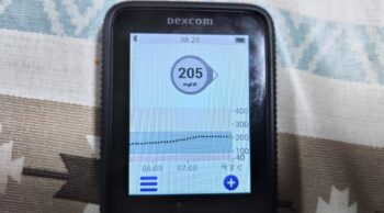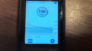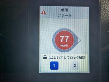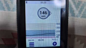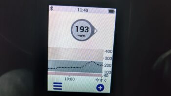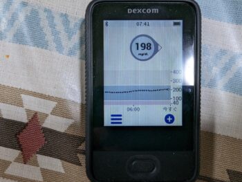 ・朝食前血糖は高く、198mg/dlでした(深夜に低血糖なりました)。