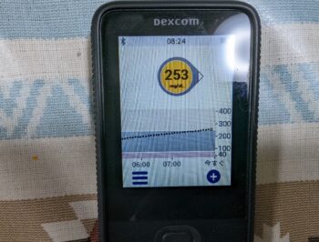 ・朝食前血糖は高く、253mg/dlでした(深夜に低血糖なりました)。