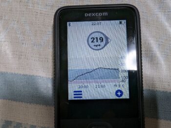 ・夕食前血糖値は高く、219mg/dl(17時頃に低血糖になり、缶ジュースを飲みました)でした。