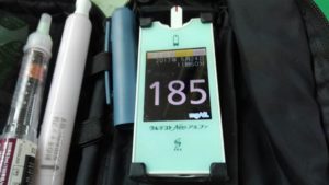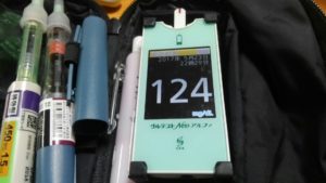 ・本日は午前中、現場作業でした。昼食前の血糖値は少し高かったようです。