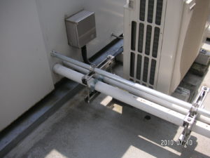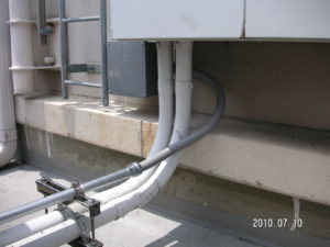 空調機は三相200Vですが、業務用なので屋上にしか電源がありません。