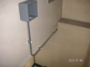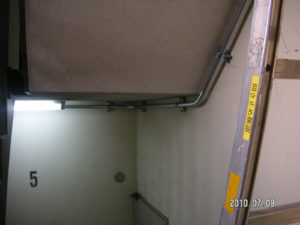9階建ての屋上から5階まで階段の踊り場の床を貫通してケーブルを通すホールを作ります。5階専用の動力ケーブルということです。