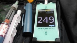 夕食前血糖値はその結果でインスリンなしだとこれくらい血糖値が上がるのを見ていただきたいと思います。夕食前、トイレが近いのであやしい結果がこれでした。