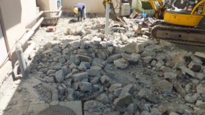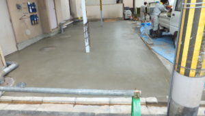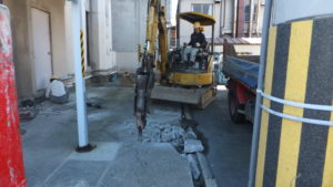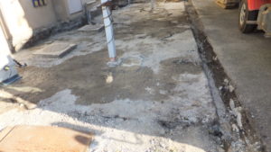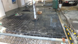 普通は汚水桝や雨水桝、即効当りになりますが、このテナントビルの場合は、1階の駐車場と駐輪場の土間の防水シートが破れたという結論で、さっそく改修しました。
