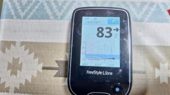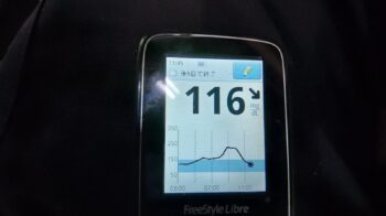 ・昼食前血糖値は良好で、116mg/dlでした(朝食時インスリン注射量を1単位減らして正解でした)。