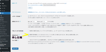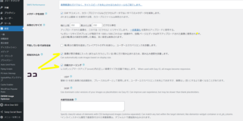 そこで考えたのですが、プラグイン同士の相性が悪いと思い、もう一度EWWW Image Optimizer有効化してみて、設定画面で遅延読み込みの欄のチェックを外してみました。