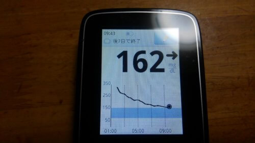 ・朝食前血糖値は少し高く、162mg/dlでした。