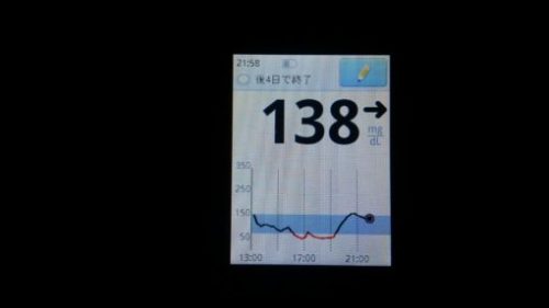・夕食前血糖値は少し高く、138mg/dlでした。