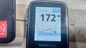 ・夕食前血糖値は少し高く、172mg/dlでした。