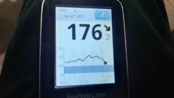 ・昼食前血糖値は少し高く、176mg/dlでした。
