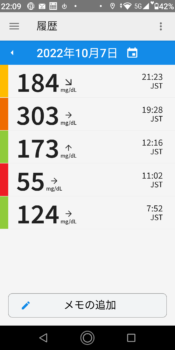 | 2022-10-07 | 血糖値 | 食事 | 超即効性インスリン 注射量 | 持続性インスリン 注射量 |