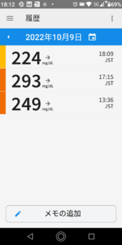 | 2022-10-09 | 血糖値 | 食事 | 超即効性インスリン 注射量 | 持続性インスリン 注射量 |