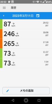 | 2023-03-11 | 血糖値 | 食事 | 超即効性インスリン 注射量 | 持続性インスリン 注射量 |