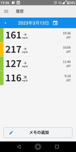 | 2023-03-12 | 血糖値 | 食事 | 超即効性インスリン 注射量 | 持続性インスリン 注射量 |