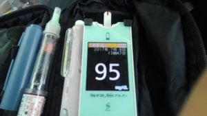 ・今日の昼食前血糖値はかったようです。食事は血養殖と昼食を兼ねています。