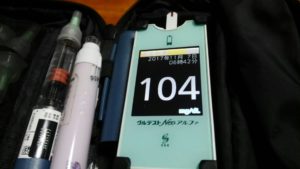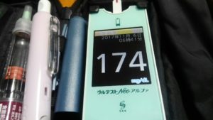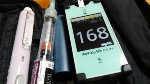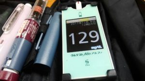 ・夕食前血糖値は低く、62mg/dlでした。昼食のラーメンはカロリーが高いと思い、インスリン注射量を1単位増やしたら低血糖でした。