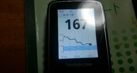 ・夕食前血糖値は少し高く、167mg/dlでした。