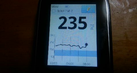 ・朝食前血糖値は高く、235mg/dlでした。