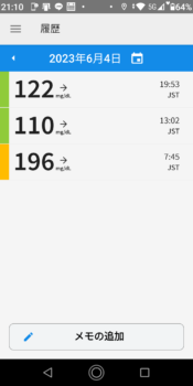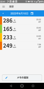 | 2023-06-10 | 血糖値 | 食事 | 超即効性インスリン 注射量 | 持続性インスリン 注射量 |