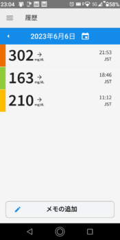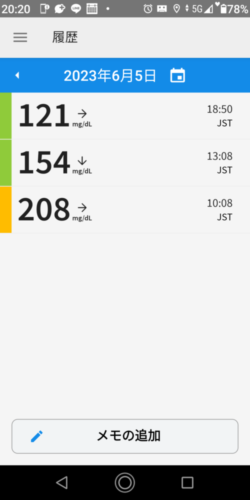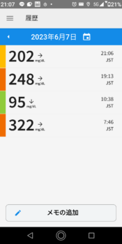 | 2023-06-07 | 血糖値 | 食事 | 超即効性インスリン 注射量 | 持続性インスリン 注射量 |