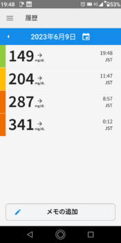 | 2023-06-09 | 血糖値 | 食事 | 超即効性インスリン 注射量 | 持続性インスリン 注射量 |