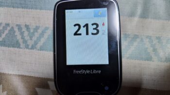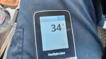 ・昼食時血糖値は低く、34mg/dlでした(低血糖の症状はなかったので表示ミスかもしれません)。