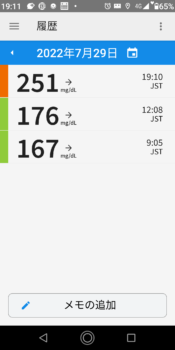 | 2022-07-29 | 血糖値 | 食事 | 超即効性インスリン 注射量 | 持続性インスリン 注射量 |