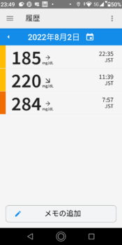 | 2022-08-01 | 血糖値 | 食事 | 超即効性インスリン 注射量 | 持続性インスリン 注射量 |