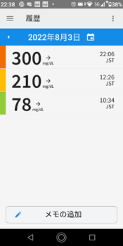 | 2022-08-03 | 血糖値 | 食事 | 超即効性インスリン 注射量 | 持続性インスリン 注射量 |