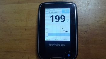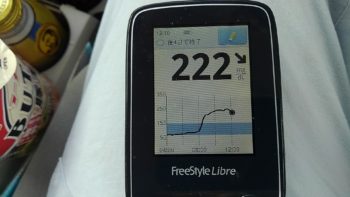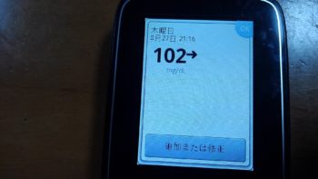 ・昼食前血糖値は、検査キットを忘れたため、測れていません。ヒューマログを10単位だけ打ちました。