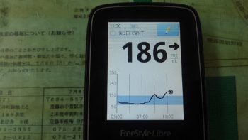 ・昼食前血糖値は少し高く、186mg/dlでした。