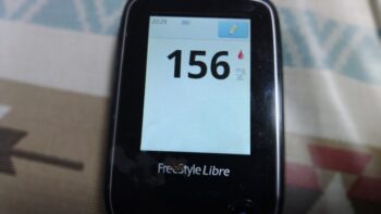 ・夕食前血糖値は少し高く、156mg/dlでした(昼食のご飯を半分にしたのが良かったようです)。