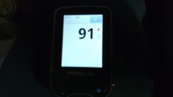 ・昼食時血糖値は少し高く、175mg/dlでした(10時30分頃に低血糖になったので缶コーヒーを飲みました)。