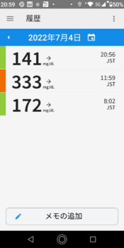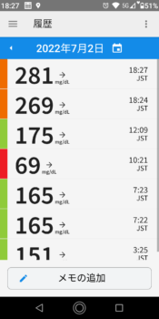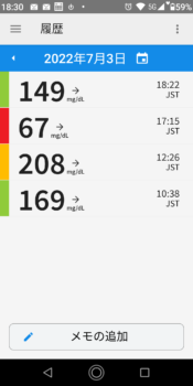 本日のデータ(朝食前血糖値を解かりやすくするため、昨夕からとします)