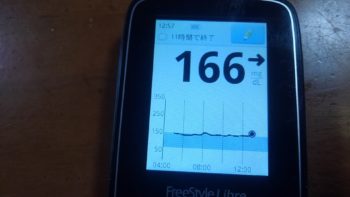 ・昼食前血糖値は少し高く、166mg/dlでした。